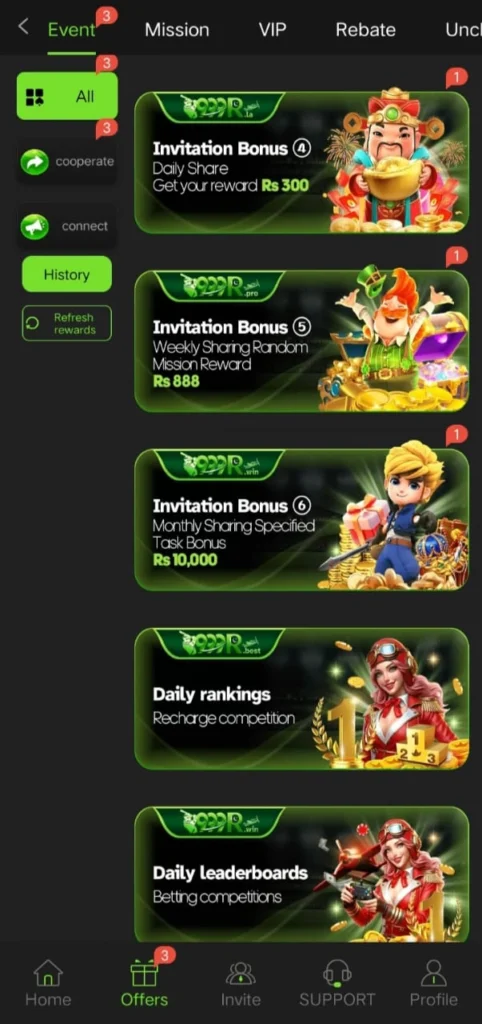 Firstly, 999R Game features a generous referral bonus program that rewards users for inviting new players. When your referred friend joins and plays, you earn instant credit or a bonus percentage. Additionally, you can invite multiple friends, allowing your rewards to grow over time. Hence, it becomes a steady way to earn extra benefits while enjoying the platform.